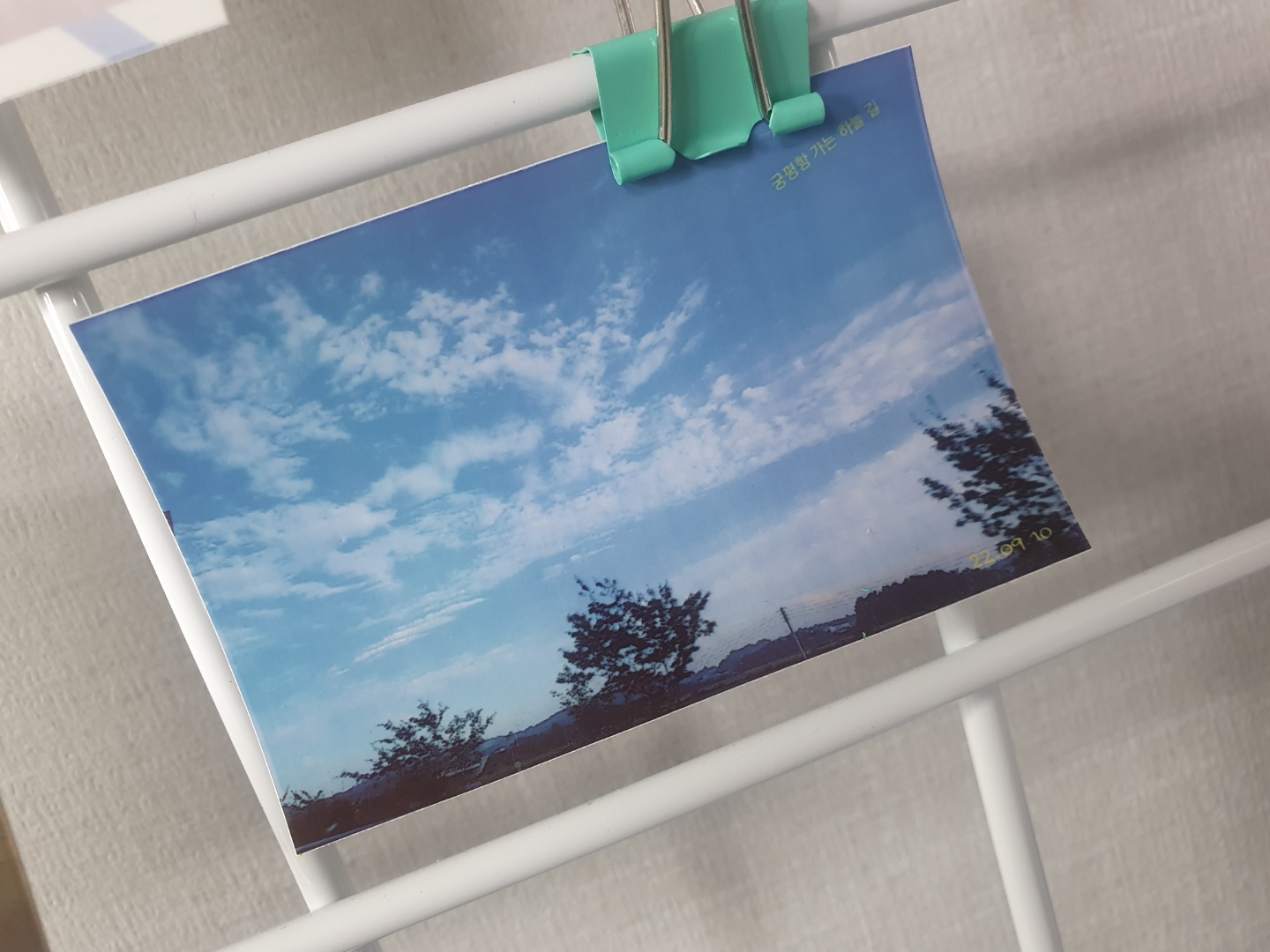 사진을 스마트폰 속에만 넣어놓고 꺼내서 자주 확인하질 않으니 뭔가 중요한 저만의 감성을 잃어버리고 사는 느낌이었어요. 그러다 하나씩 출력해서 책상에 붙여놓으니 공부하다가도 잠깐씩 쳐다보면 힐링이 되더라구요.