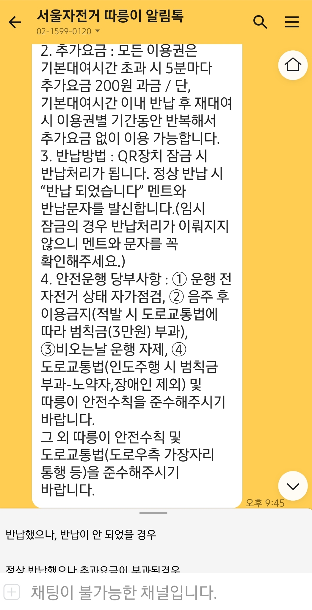 이렇게 되면 잘 이용한 것입니다. 반납이 제대로 되지 않았는데 그냥 가버리시면 추후에 벌금을 물게 되니 꼭 반납되었다는 카톡 알림을 받고 자리를 뜨셔야 합니다.
