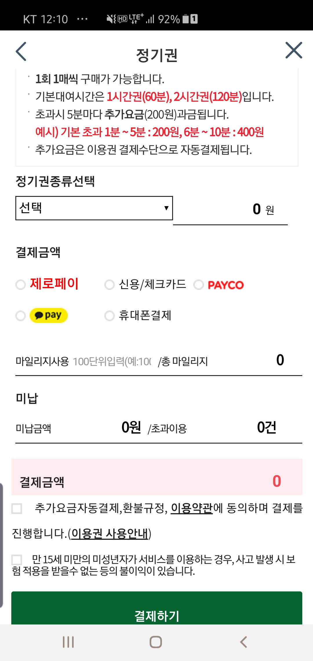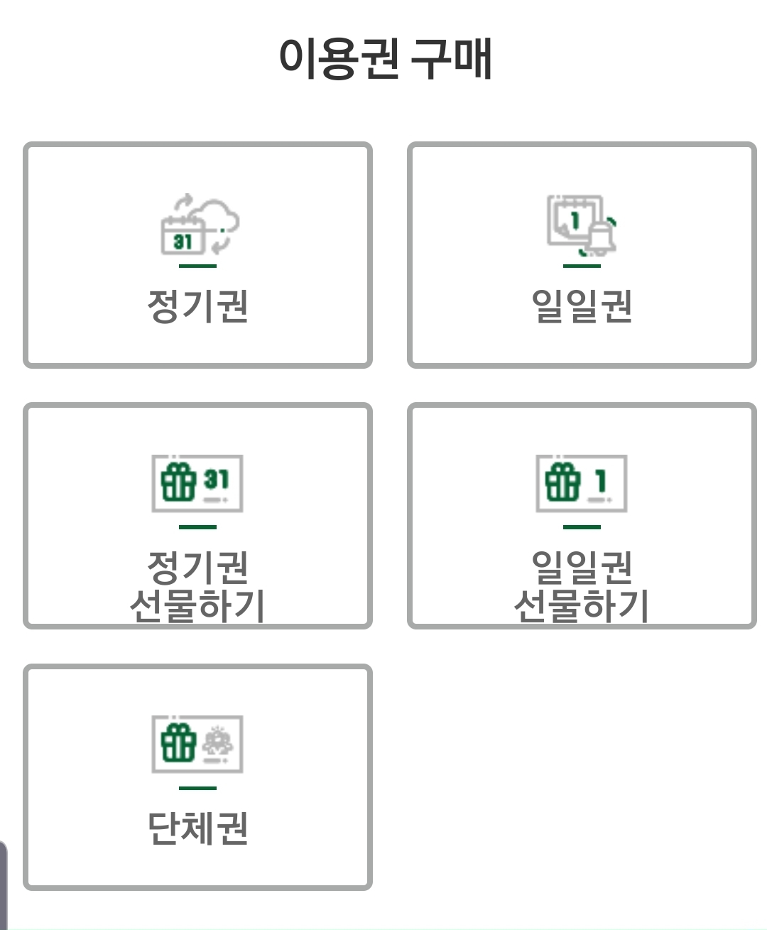 3. 메뉴로 들어가서 결제를 합니다.(정기권과 일일권 중 골라서 결제합니다.)